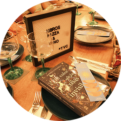 A book club where conversation is shared like a good pizza. We read, eat, and toast. A space to talk about stories that move us and build community around a book, a drink, and words.